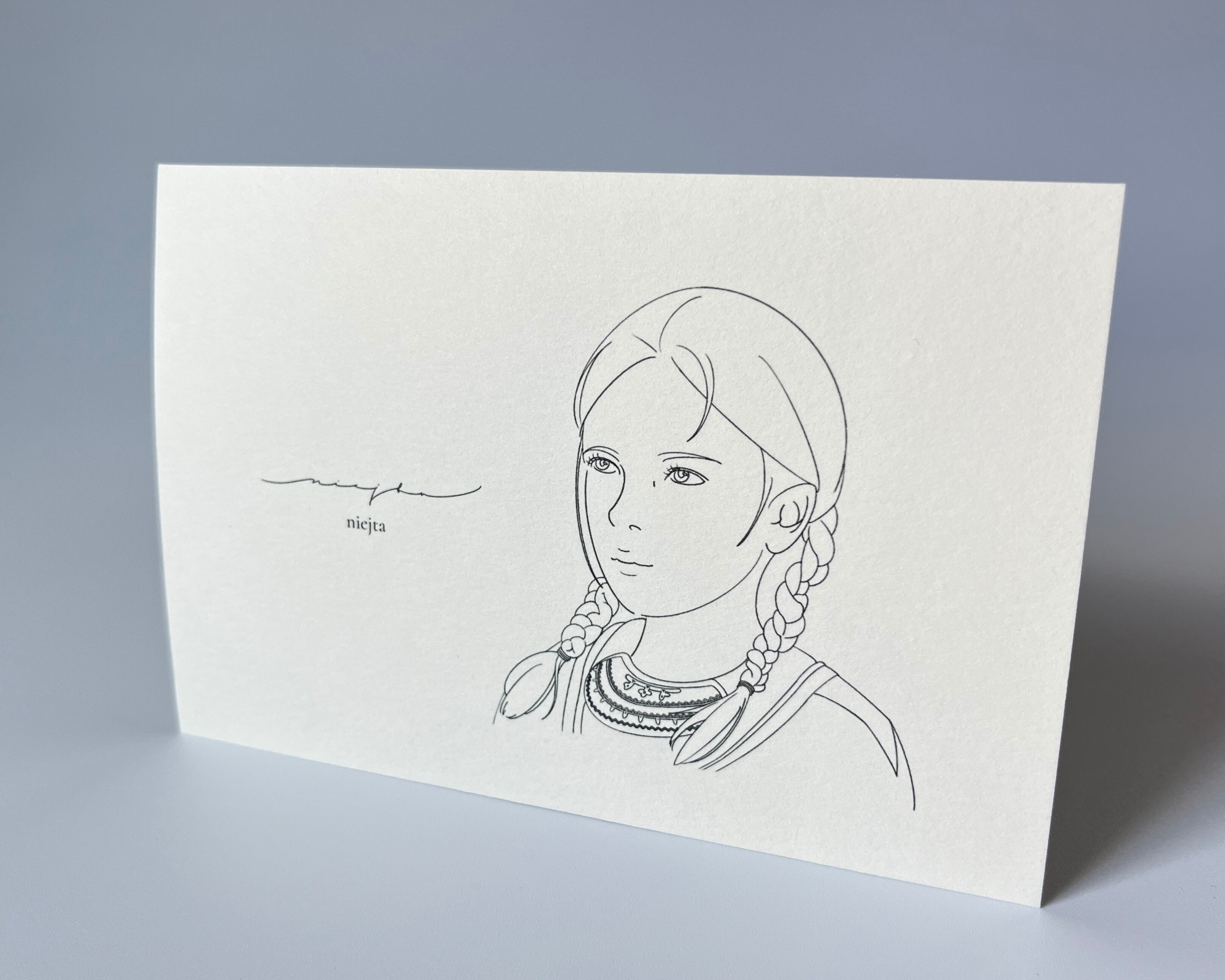 ニューブレダン紙:版画用紙として知られ、乳白色の弾力ある表面が特徴です。少しザラつきのある質感で、味わいがあります。